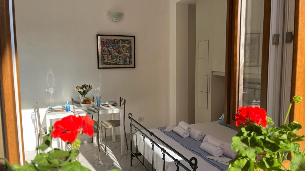 Nella stanza un armadio molto capiente, un tavolo con 4 sedie e il comodo letto matrimoniale a 2 piazze dotato di lenzuola,